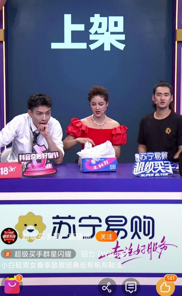 超級秀舞臺與“超級買手”直播間首度實現(xiàn)連麥,流量“打穿”效果明顯。在蘇寧易購與抖音雙平臺的連播中,直播間全場補貨76次,群星買手人均喜提39次秒空。