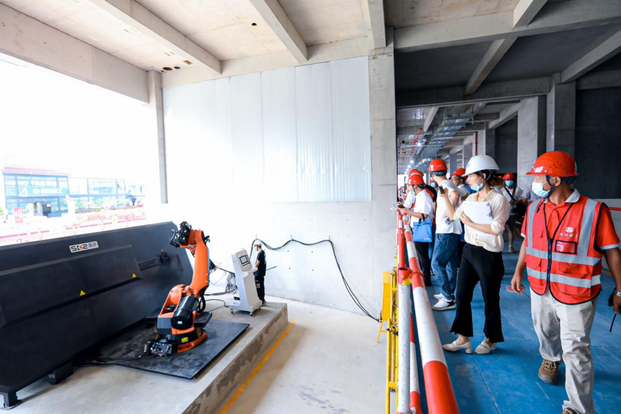 此次觀摩由“三中心一展區(qū)”構成,即創(chuàng)魯班獎優(yōu)秀工藝展示中心、科技創(chuàng)新中心、智能指揮中心和建筑內(nèi)展區(qū)。觀摩主要亮點有黨建引領高質(zhì)量發(fā)展、質(zhì)量管理體系與機制(參建方質(zhì)量管理體系、6σ管理、質(zhì)量管理標準化、精細化)、創(chuàng)魯班獎優(yōu)秀工藝展示、市工務署優(yōu)秀工藝工法展示、工程質(zhì)量常見問題治理(樣板引路)、智能建造推動質(zhì)量提升(科技創(chuàng)新展示、抹灰機器人、實測實量機器人等智能建造設備實操演示、BIM技術)、智慧工地展示(“e工務”APP應用與推廣、智慧工地、智能指揮等)、6S管理等,通過現(xiàn)場講解員的介紹,使觀摩人員更加清晰且深入的了解相關內(nèi)容。