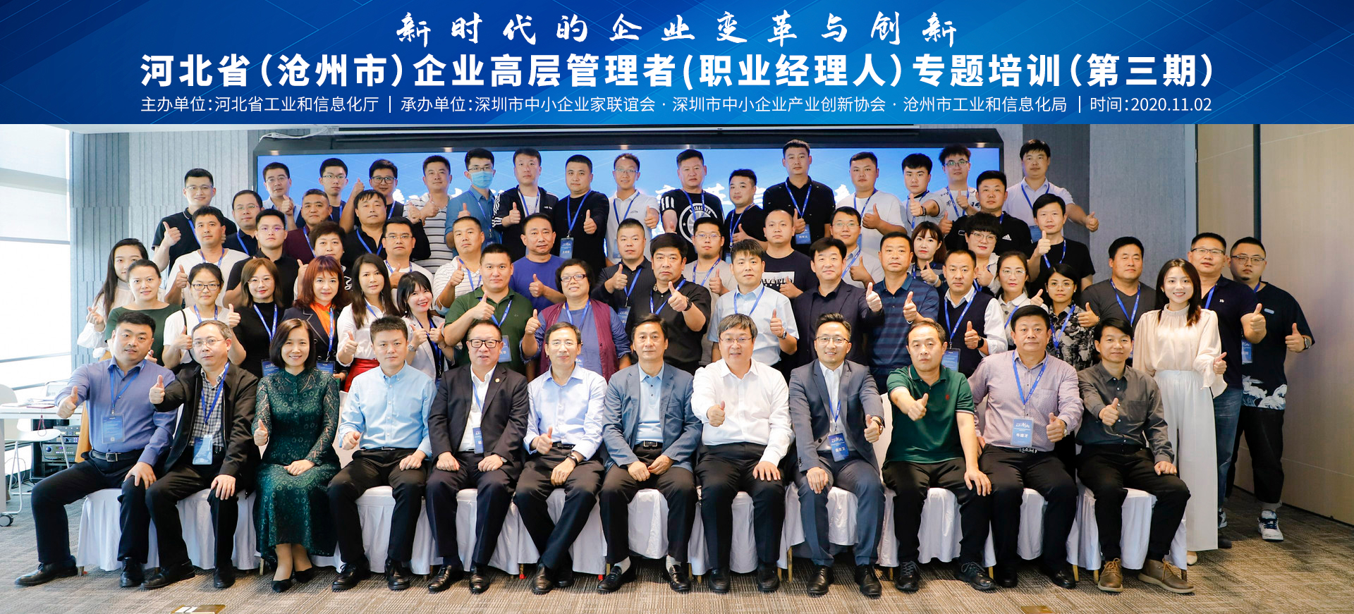 見圳客戶端·深圳新聞網(wǎng)2020年11月9日訊 近日,由河北省工業(yè)和信息化廳主辦,深圳市中小企業(yè)家聯(lián)誼會(huì)、深圳市中小企業(yè)產(chǎn)業(yè)創(chuàng)新協(xié)會(huì)、滄州市工業(yè)和信息化局承辦的“新時(shí)代的企業(yè)變革與創(chuàng)新——河北省中小企業(yè)高層經(jīng)營(yíng)管理者(職業(yè)經(jīng)理人)專題培訓(xùn)(滄州班)”在深圳隆重開班。來自滄州市產(chǎn)業(yè)集群龍頭企業(yè)、優(yōu)秀民營(yíng)企業(yè)、“專精特新”企業(yè)、培育擬上市企業(yè)的董事長(zhǎng)、總經(jīng)理等共計(jì)56人參加培訓(xùn)。