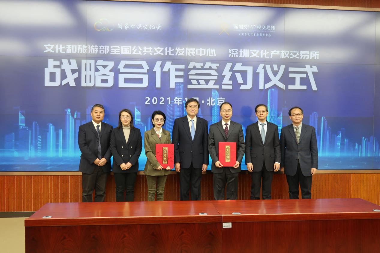 見圳客戶端·深圳新聞網(wǎng)2021年1月13日訊 今日,文化和旅游部全國公共文化發(fā)展中心(以下簡稱“發(fā)展中心”)與深圳文化產權交易所(以下簡稱“深圳文交所”)在北京簽署戰(zhàn)略合作協(xié)議。文化和旅游部黨組成員、副部長張旭出席并見證簽約儀式。發(fā)展中心主任白雪華主持簽約儀式。發(fā)展中心副主任尹壽松與深圳文交所總經理助理、深圳市文化金融服務中心常務副主任王曉銳簽署戰(zhàn)略合作協(xié)議。文化和旅游部公共服務司副司長朱渤、國際交流與合作局副局長鄭浩,以及簽約單位相關人員參加簽約儀式。