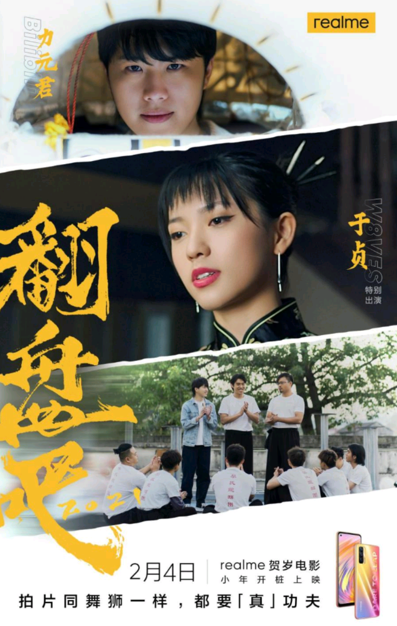 賀歲微電影《翻盤吧2021》以中國傳統(tǒng)民間藝術(shù)舞獅為背景,講述了廣東醒獅武館新一代傳承人阿正通過不懈的努力,聯(lián)合師兄弟一起振興武館,并在B站UP主力元君的鼓勵下,用真我V15國潮錦鯉手機拍攝醒獅視頻,體現(xiàn)年輕一代敢于突破傳統(tǒng),重振武館,推廣及傳承傳統(tǒng)文化。此外,個性鮮明的說唱新星于貞也參與演出,共同演繹“越努力越幸運”的翻盤故事。
