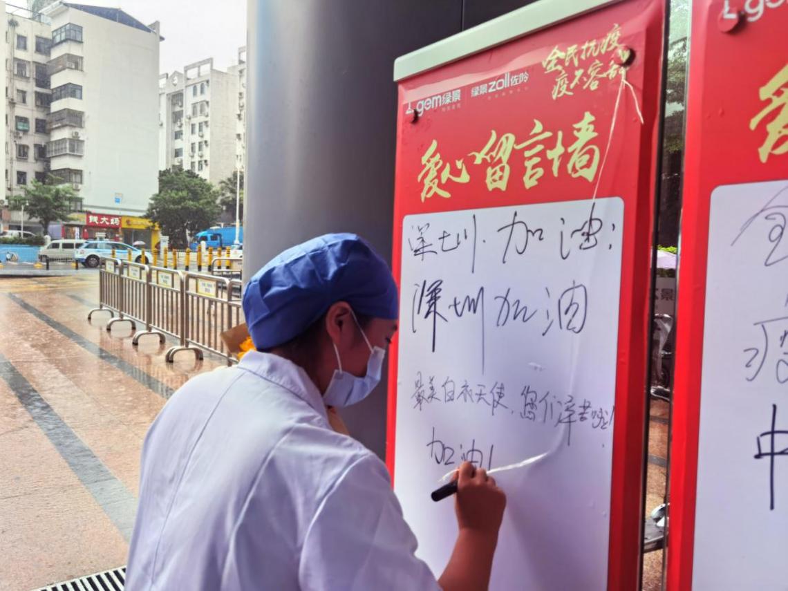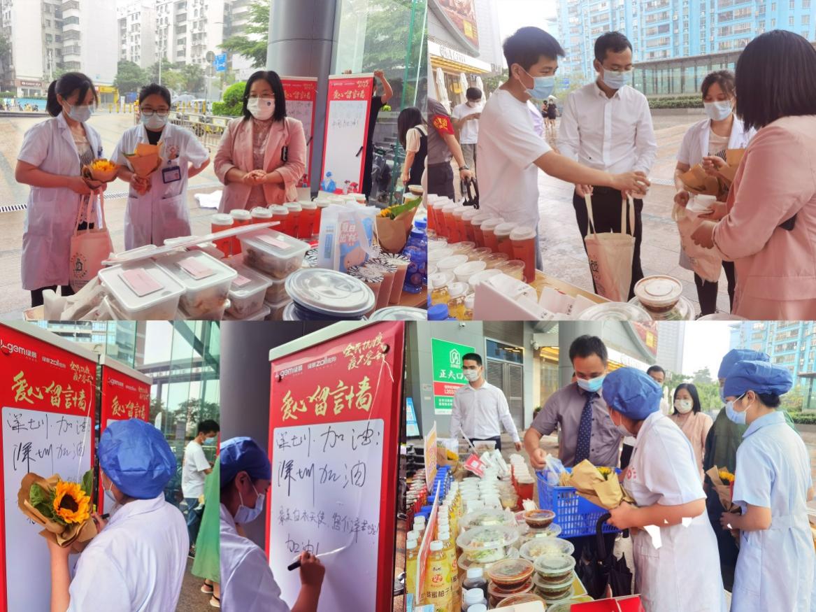 下梅林社區(qū)健康服務(wù)中心的護(hù)士小姐姐們,也在中午換崗的間隙,來(lái)到了活動(dòng)現(xiàn)場(chǎng)挑選美食。護(hù)士小姐姐們非常高興地表示,在暴雨天不用等外賣(mài),就可以享受暖心的美味午餐,可以留出更多的時(shí)間,回到崗位工作,繼續(xù)“戰(zhàn)疫”!其中還有一位可愛(ài)的護(hù)士小姐姐為給自己加油打氣,在愛(ài)心留言墻上,寫(xiě)下了“加油!我們是最棒的!”