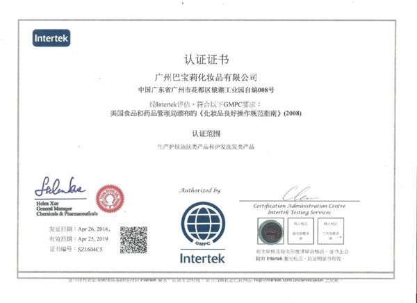 蔻斯汀于2012獲得GMPC(美國、歐盟、東盟)認(rèn)證