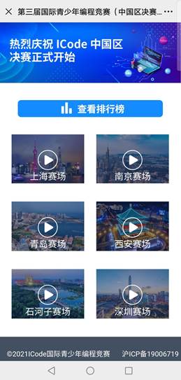 ICode2021中國(guó)區(qū)決賽每個(gè)分賽場(chǎng)都安排賽況實(shí)時(shí)直播,個(gè)人全國(guó)排行榜/分賽場(chǎng)排行榜實(shí)時(shí)可見(jiàn)。家長(zhǎng)及帶隊(duì)老師們可以時(shí)刻掌握孩子的闖關(guān)進(jìn)度。選手比賽名次透明且公開(kāi),家長(zhǎng)和帶隊(duì)老師雖身不在考場(chǎng),但心依舊可以感受到選手的努力和創(chuàng)意,ICode架起選手與家長(zhǎng)和老師之間的橋梁,為每一步小小 的 前進(jìn)而喝彩。