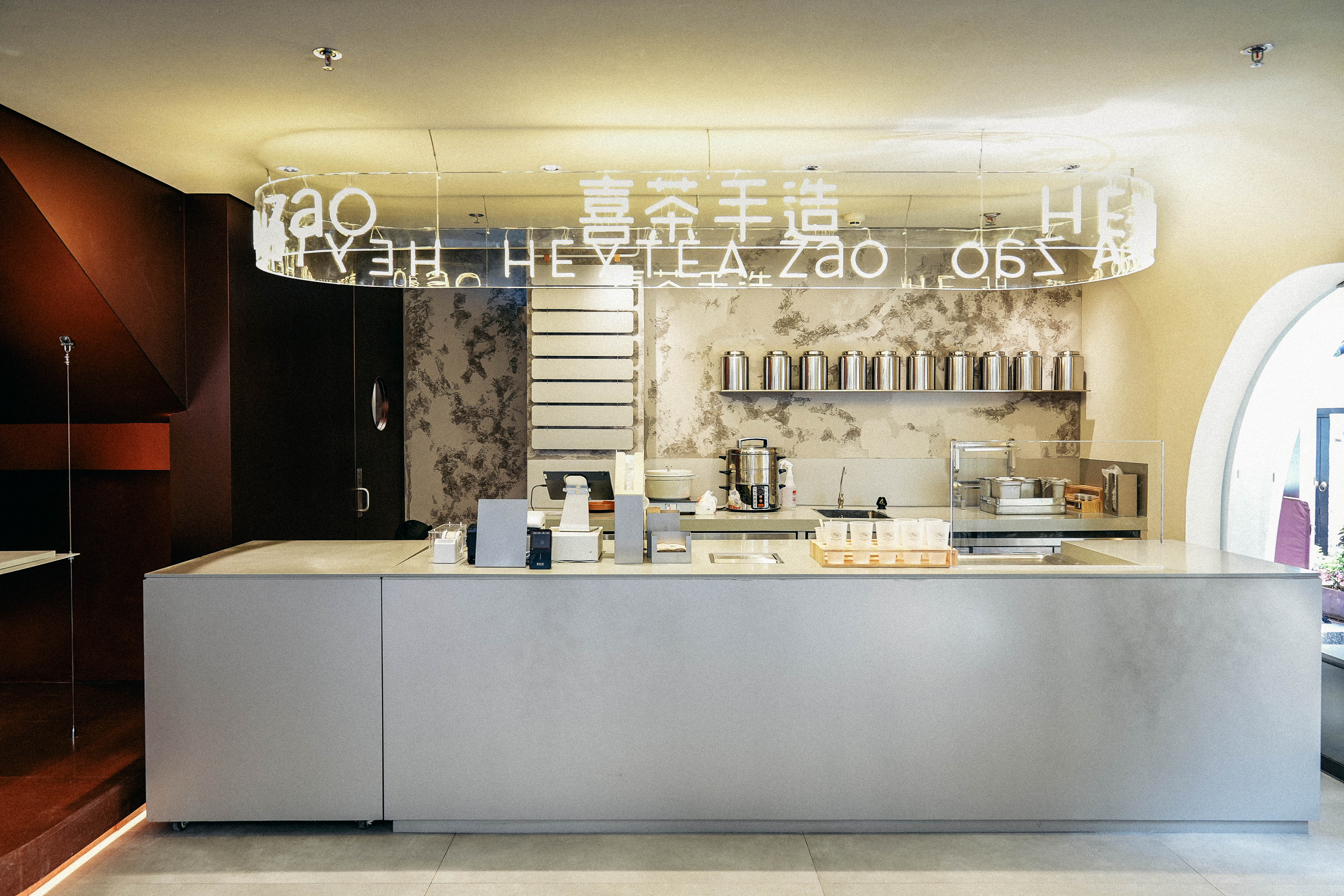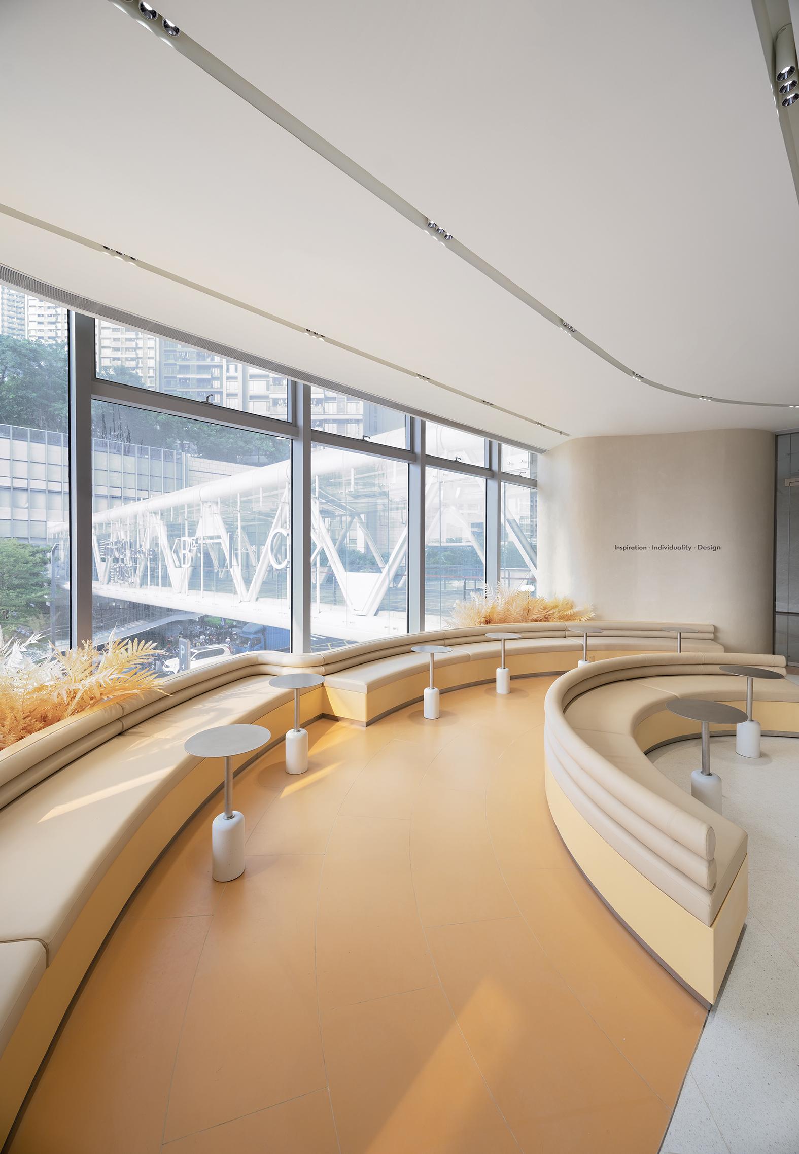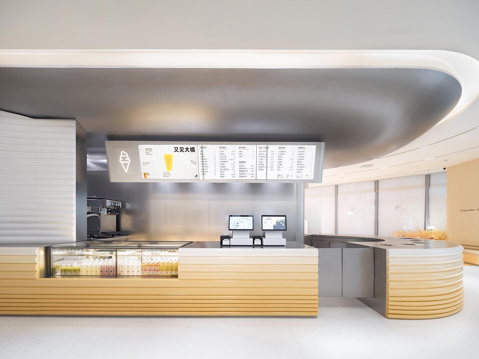 走進喜茶深圳壹方天地C區(qū)店,通透的全落地玻璃外立面,讓藍天白云似乎觸手可及;渾然一體的圓潤吧臺,讓整個空間更為純粹;橙白漸變的門店主色調,為深圳增添了一份溫柔的秋意。門店整體布局采用了圍合式布局,圍繞中心的水吧,從外立面到客區(qū)桌椅的布置都以圓弧形態(tài)進行圍合,隨性且愜意。