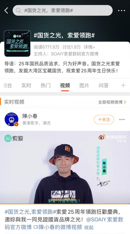 讀特客戶端·深圳新聞網(wǎng)2021年10月22日訊(記者 田志強(qiáng))近日,索愛(ài)廣州25周年慶領(lǐng)跑活動(dòng)在網(wǎng)絡(luò)持續(xù)發(fā)酵,引爆輿論熱烈關(guān)注。作為音頻數(shù)碼行業(yè)首個(gè)登錄廣州塔的國(guó)貨品牌,索愛(ài)25周年領(lǐng)跑活動(dòng)吸引了大量的媒體和達(dá)人齊聚廣州塔,索愛(ài)品牌和產(chǎn)品熱度以廣州為中心迅速向周邊地域傳播。在索愛(ài)冠名高鐵、簽約陳小春夫婦為品牌形象大使等品牌事件的疊加聚合效應(yīng)下,#國(guó)貨之光,索愛(ài)領(lǐng)跑#等話題和熱度持續(xù)傳播至各社交平臺(tái),各個(gè)類(lèi)別KOL相繼為索愛(ài)發(fā)聲,僅在微博平臺(tái)的話題閱讀量已突破數(shù)千萬(wàn)。
