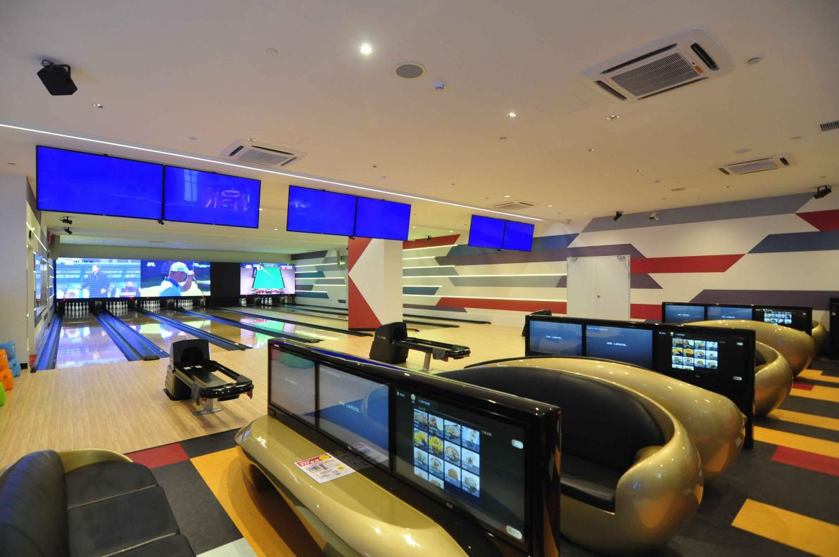 保齡球區(qū)域,朗玩的保齡球采用了美國Brunswick公司最新的保齡球機(jī)。在放置保齡球瓶的上方墻面上,設(shè)置了放映各種運(yùn)動、音樂節(jié)目的大屏幕。四周設(shè)有的攝像鏡頭能夠全方位捕捉玩家們投球瞬間,在大屏幕上可以看到這些精彩瞬間。采用了鐳射光線等技術(shù)的華麗活動(月光投球游戲)每小時(shí)都會進(jìn)行一次,閃耀炫酷的設(shè)計(jì)會顛覆玩家們一直以來對于保齡球的認(rèn)知!