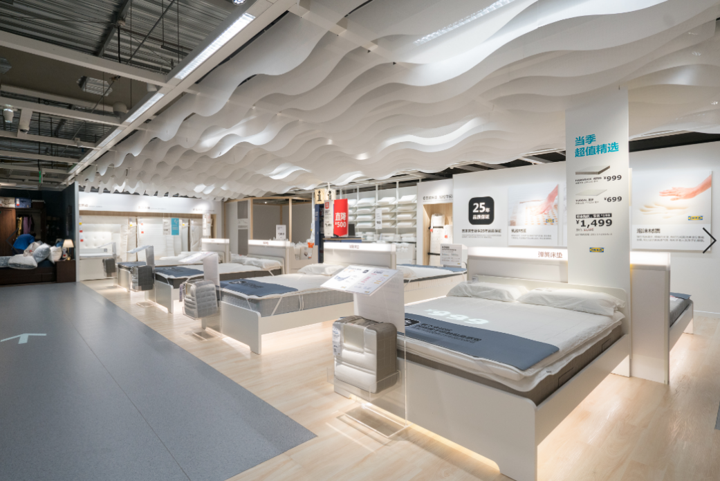 在床墊挑選區(qū),宜家專門設計了一個床墊的“沉浸式”體驗室,可以讓顧客全身心放松地感受宜家床墊。