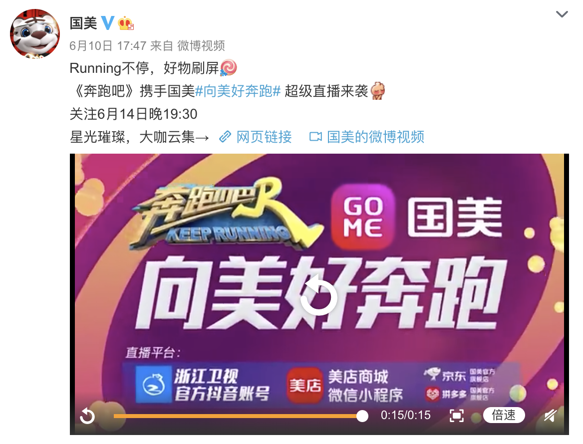 日前,國(guó)美官方微博宣布,6月14日晚19點(diǎn)30分,浙江衛(wèi)視《奔跑吧》將與國(guó)美聯(lián)袂打造向美好奔跑超級(jí)直播,“跑男”三位元老鄭愷、李晨、 Angelababy楊穎,將與主持人伊一、沈濤、陳歡和新生代演員宋妍霏一起直播帶貨。屆時(shí),國(guó)美“帶貨王”總裁王俊洲也將親臨現(xiàn)場(chǎng),為網(wǎng)友謀福利。