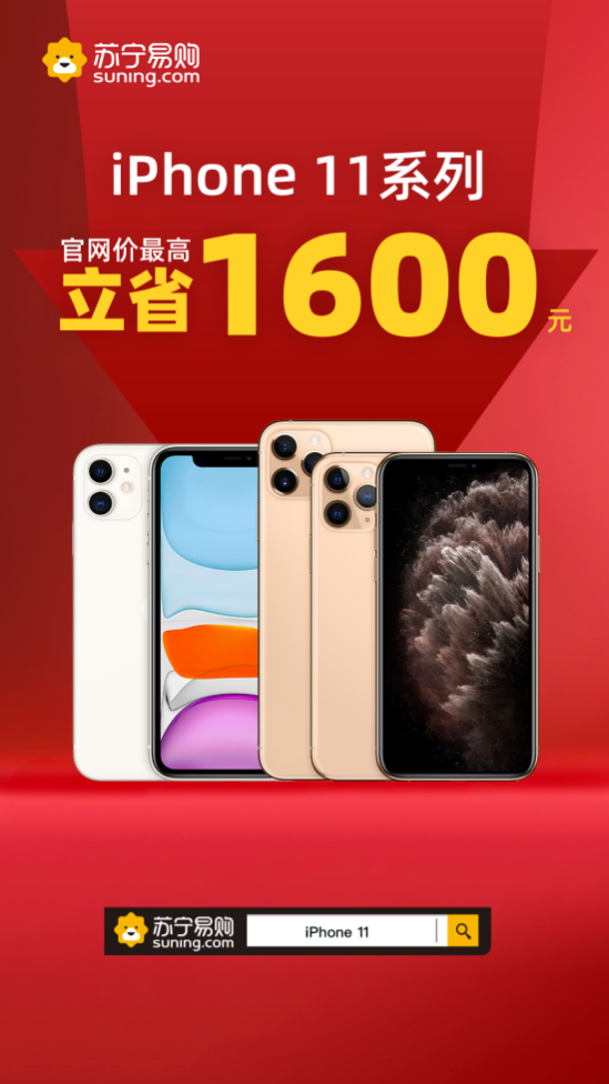 今日,蘇寧手機官方微博表示,iPhone11啟動全線降價,最高降價力度達到1600元,iPhone11最低到手價4999元。