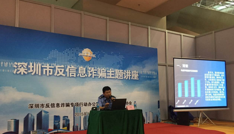 “針對信息詐騙犯罪高發(fā)的態(tài)勢,今年8月1日,我市開展以深圳市政法委書記李華楠同志為領(lǐng)導(dǎo)小組組長的反信息詐騙犯罪專項行動,為期半年。此次專項行動主要集中公安、銀行、通信、工商、網(wǎng)絡(luò)企業(yè)等專業(yè)力量共同打擊信息詐騙犯罪。經(jīng)過合成打擊、宣傳防范、警信警銀合作、對策研究等多個方面的工作,8月1日至10月25日,全市共立信息詐騙案件環(huán)比下降了13.9%;破信息詐騙案件280宗,環(huán)比260宗上升了7.7%;逮捕涉信息詐騙犯罪嫌疑人190人,環(huán)比149人上升了27.5%;打掉涉信息詐騙犯罪團伙19個,環(huán)比19個持平;凍結(jié)涉案賬戶203個,資金3089.9萬元?!鄙钲谑泄簿中虃删执箨犻L朱海在講座上分享道。