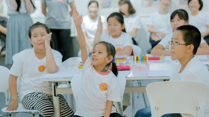 圖說:暑假藝術(shù)創(chuàng)作營學(xué)員在課堂上積極互動。
