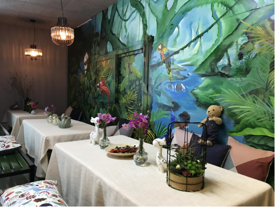 還有那漫山遍野的鮮花和蔬菜,是這個(gè)花園里最美的風(fēng)景線,還有那清晨中薄薄的霧,和那湛藍(lán)的天空,給這個(gè)花園做了最棒的裝飾,跟著香味,我走進(jìn)了一個(gè)童話房門,墻壁上畫滿了森林和動(dòng)物,桌子上擺滿了各式各樣的小燈,瓶子和香氣撲鼻的鮮花、干花,香極啦!看著這仙境般的地方,臉上總會(huì)不由自主地浮起笑容!