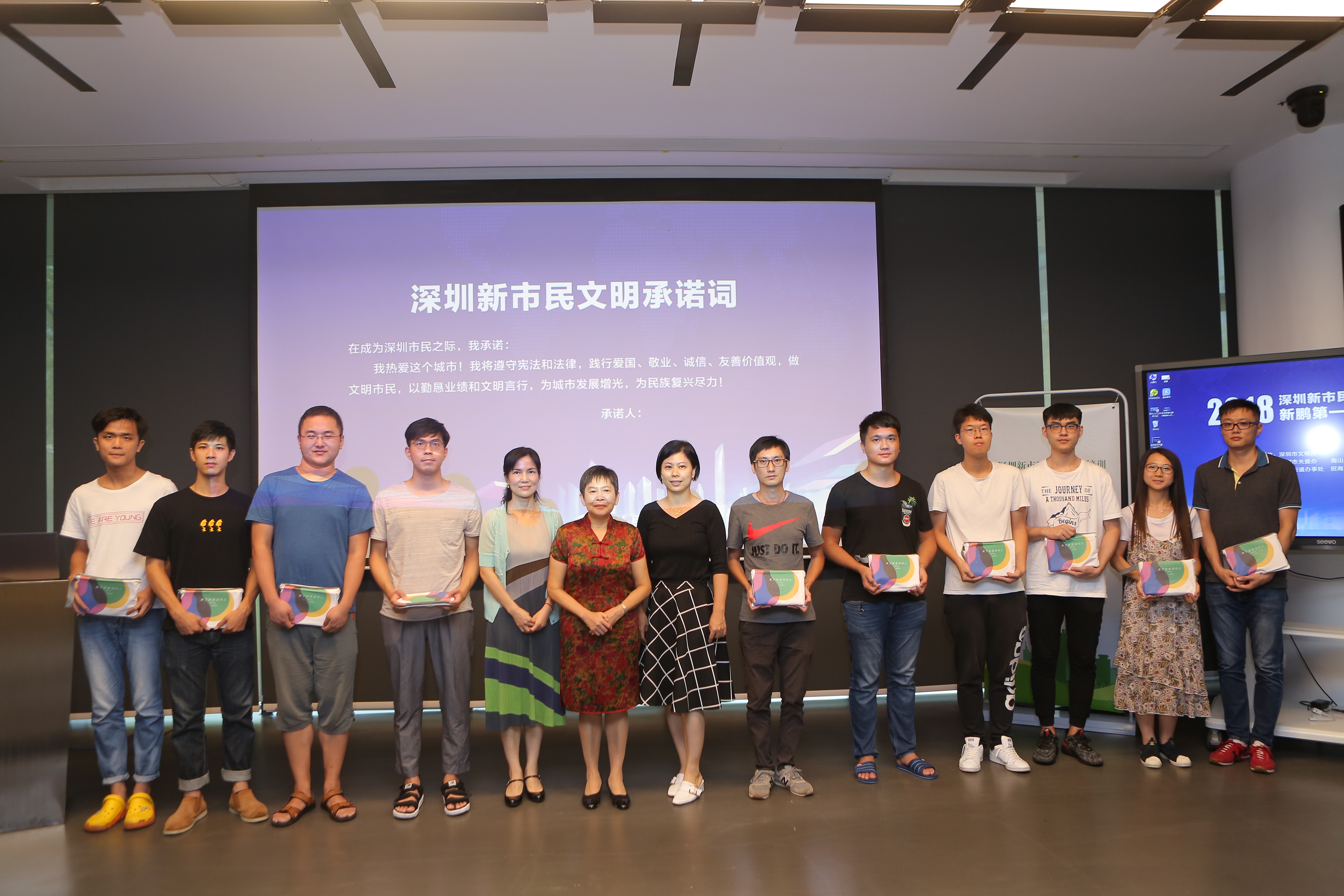 活動(dòng)現(xiàn)場(chǎng)邀請(qǐng)到了新市民代表上臺(tái)宣讀“深圳市民文明公約”,宣誓從自身點(diǎn)滴做起,與文明城市一同成長(zhǎng)。市關(guān)愛辦副主任華榮、美國(guó)加州大學(xué)洛杉磯分校生物化學(xué)博士任躍英為市民代表送上新版深圳福袋。福袋是一份詳盡的“深圳說(shuō)明書”,包括《深圳家書》郵資封、《深圳市民生活指南》、《市民禮儀知識(shí)簡(jiǎn)明讀本》、文明成長(zhǎng)禮券等一系列資料,既向新市民表達(dá)歡迎,同時(shí)也引導(dǎo)新市民深度認(rèn)識(shí)深圳,培育文明行為習(xí)慣。