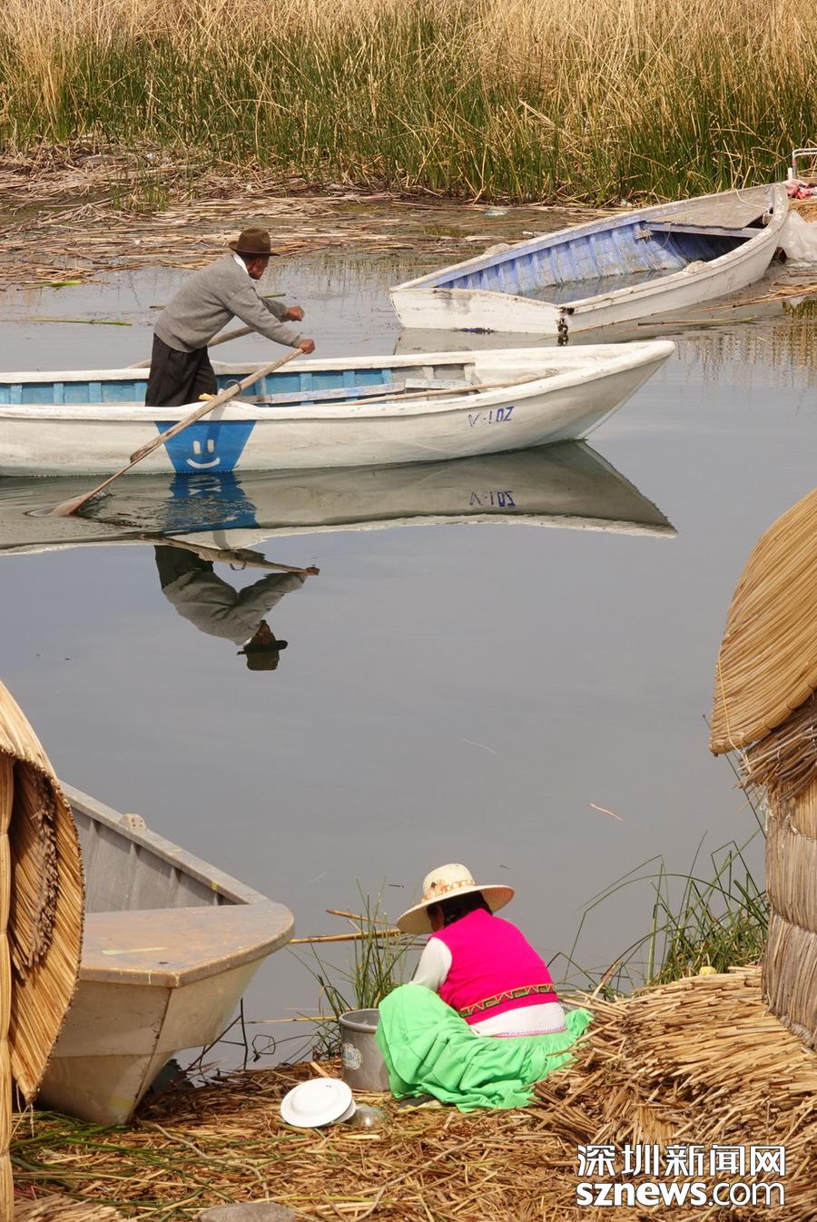 早至遠古,印第安人用香蒲編成小舟或筏子,下湖捕魚。湖中還有幾十個印第安人烏羅族居住的“漂浮島”,它們是用香蒲在湖面堆集而成的人工島,島上的居民都以捕魚為生。李仁奇 攝