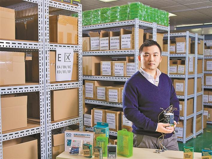 我在大學甚至更早的時候就深有體會——我有很多想法,但是缺乏必要的技術去把這個想法實現(xiàn)出來。我在國外的一個開源硬件論壇留言說我的體會,沒想到有那么多創(chuàng)客回饋說有同感,論壇上創(chuàng)客們的積極回應讓我看到了商機。我發(fā)現(xiàn),很多硬件模塊因為創(chuàng)客需要的量少,很多工廠不愿意生產。后來,我想到了在國際創(chuàng)客論壇發(fā)帖征集創(chuàng)客們的需求,再到國內電子市場搜集硬件加工后發(fā)給創(chuàng)客的點子。于是,我便做起了開源硬件的生意。“為創(chuàng)客服務”,這是我創(chuàng)業(yè)的最初目標。