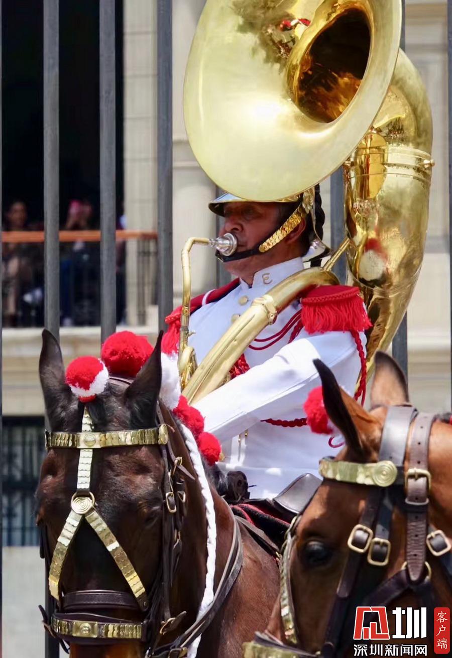 可能也與秘魯民俗有關(guān),秘魯國家軍樂隊也會同時在利馬總統(tǒng)府門前廣場公開盛裝演練,市民都可以近距離觀賞。李仁奇攝