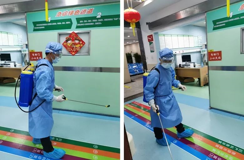 后勤管理科每天堅持對醫(yī)院所有公共院區(qū)域進行普通消殺,對與疫情相關(guān)的發(fā)熱科室、隔離病區(qū)等重點區(qū)域以及疑似病患所經(jīng)過的全部區(qū)域進行終末消殺。