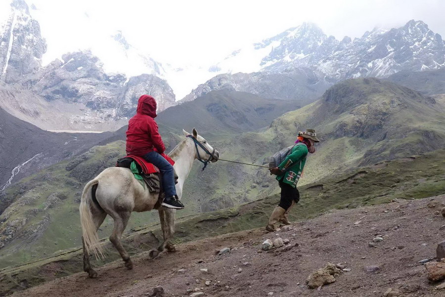這里登山道路較好較平緩,難度在于高原缺氧,起點海拔4320米,終點5200米,往返一般需耗時4小時,體力不支者可以騎馬,但最后的約600米陡坡必須步行。李仁奇攝