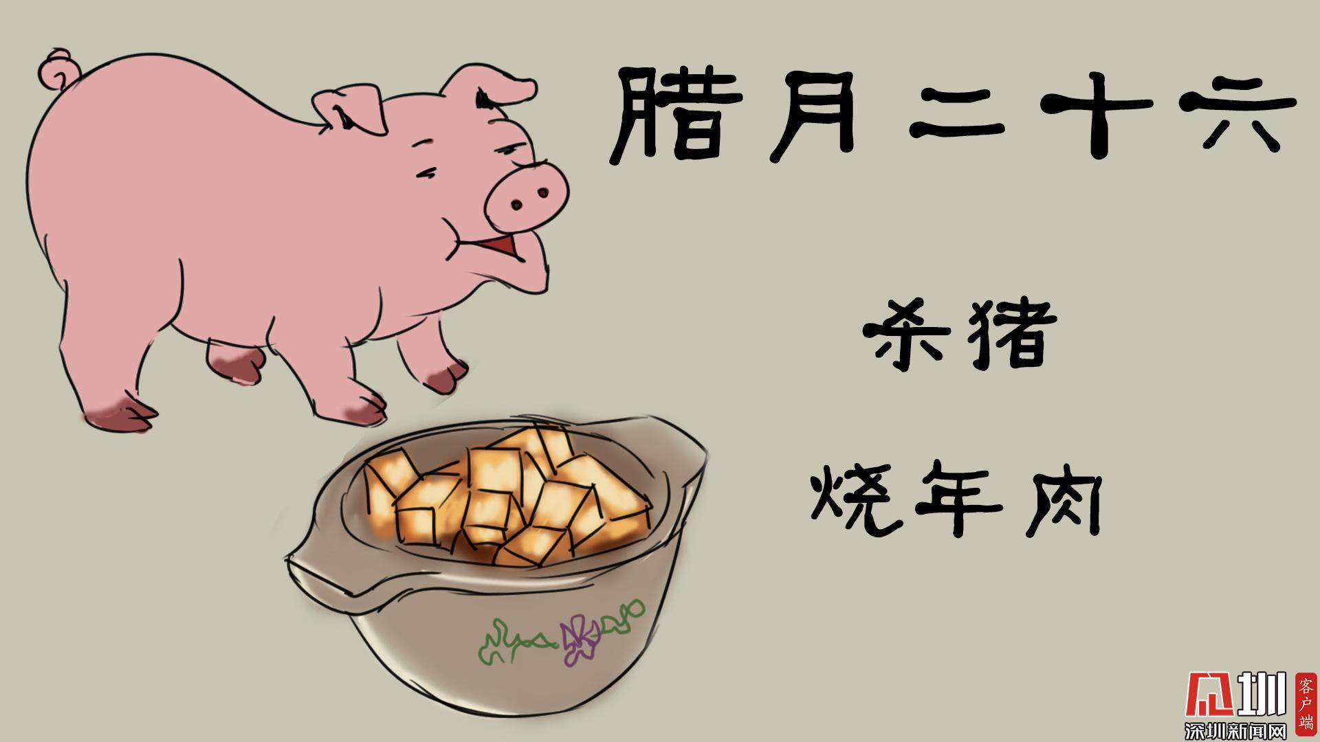 臘月二十六要?dú)⒇i燒年肉,開(kāi)始置辦年貨。殺豬,是指殺自己家養(yǎng)的豬;割肉是指沒(méi)養(yǎng)豬的人到集市上去買(mǎi)肉。以前經(jīng)濟(jì)不發(fā)達(dá),人們往往在年節(jié)時(shí)才能吃到肉,故稱(chēng)為“年肉”。