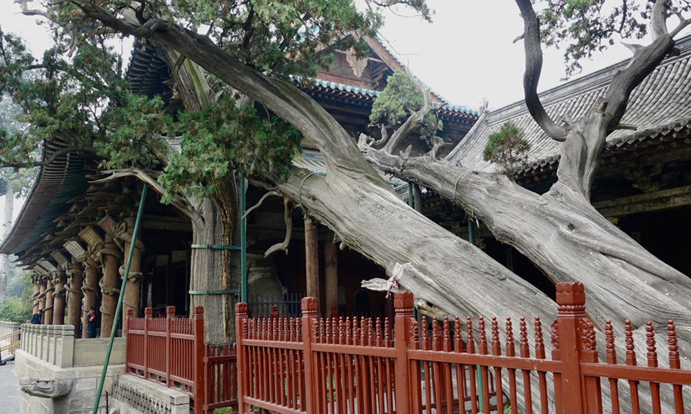圣母殿左側的周柏,形似臥龍,俗稱“臥龍柏”。李仁奇 攝