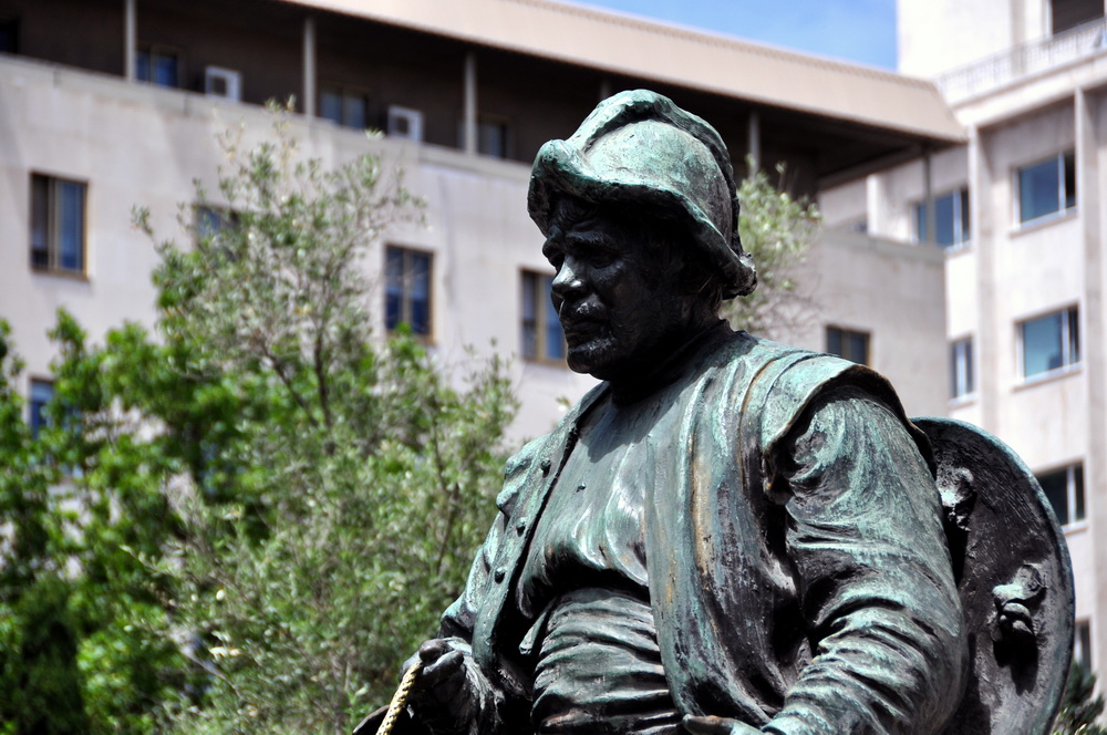 馬德里是一個藝術(shù)之都,文藝復(fù)興時期西班牙最偉大的作家塞萬提斯及其小說人物堂吉柯德和仆人桑丘的塑像位于市區(qū)中心,是世界各國游客的打卡之地。李仁奇 攝