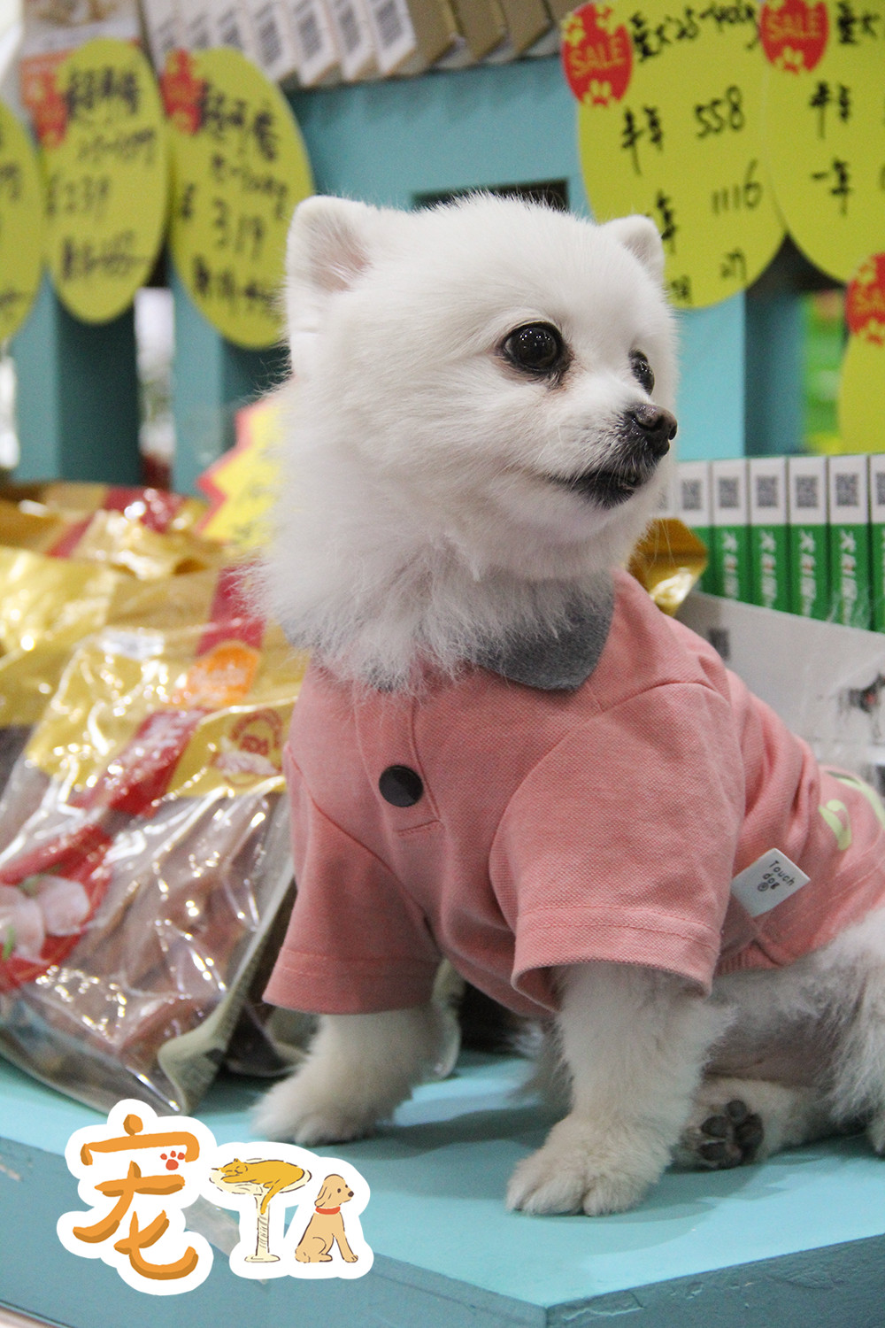 商品展臺(tái)上的店員狗狗。