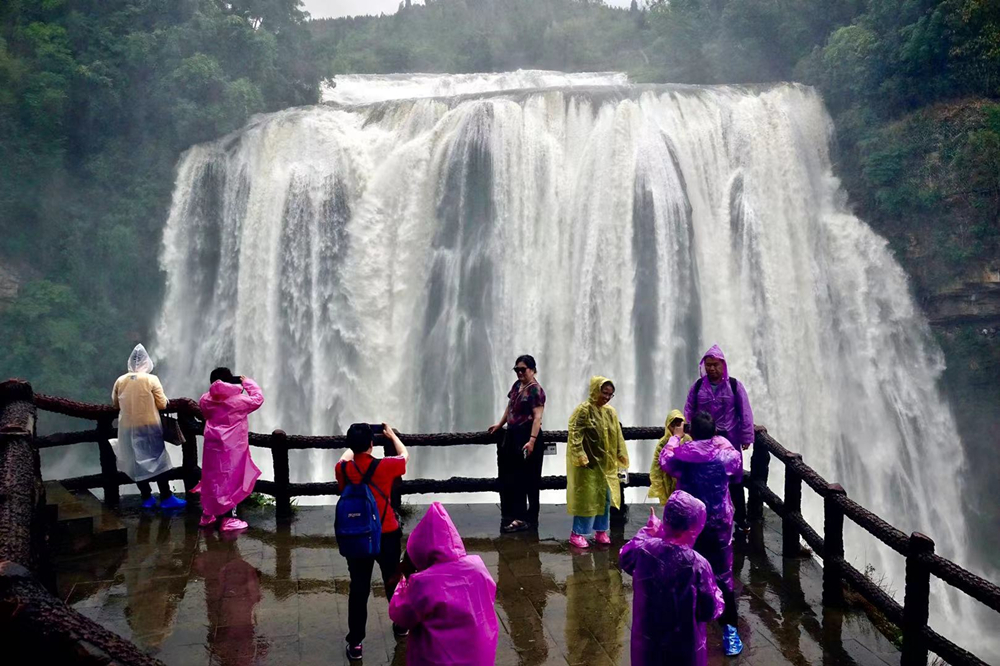 黃果樹(shù)瀑布的游客數(shù)以萬(wàn)計(jì),但是能夠在豐水期觀賞到特別壯觀景象的游客卻是少數(shù)。李仁奇 攝