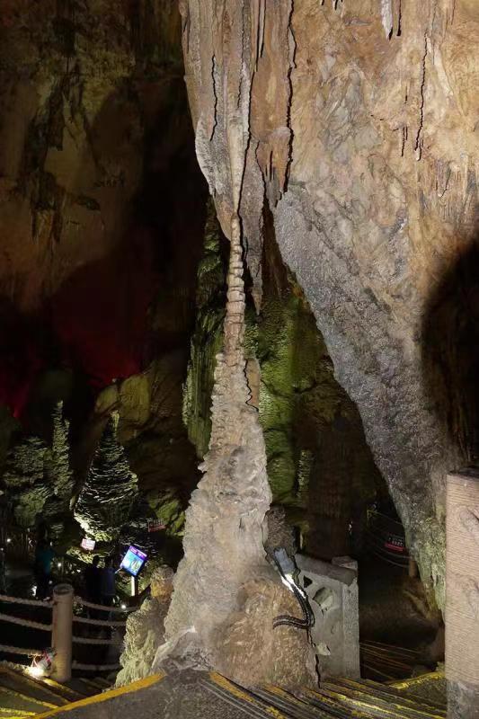 全洞容積達(dá)500萬(wàn)立方米,有上、中、下三層,洞中遍布石筍、石柱、石芽、石旗等四十多種洞穴堆積物,形成千姿百態(tài)的巖溶景觀。李仁奇 攝