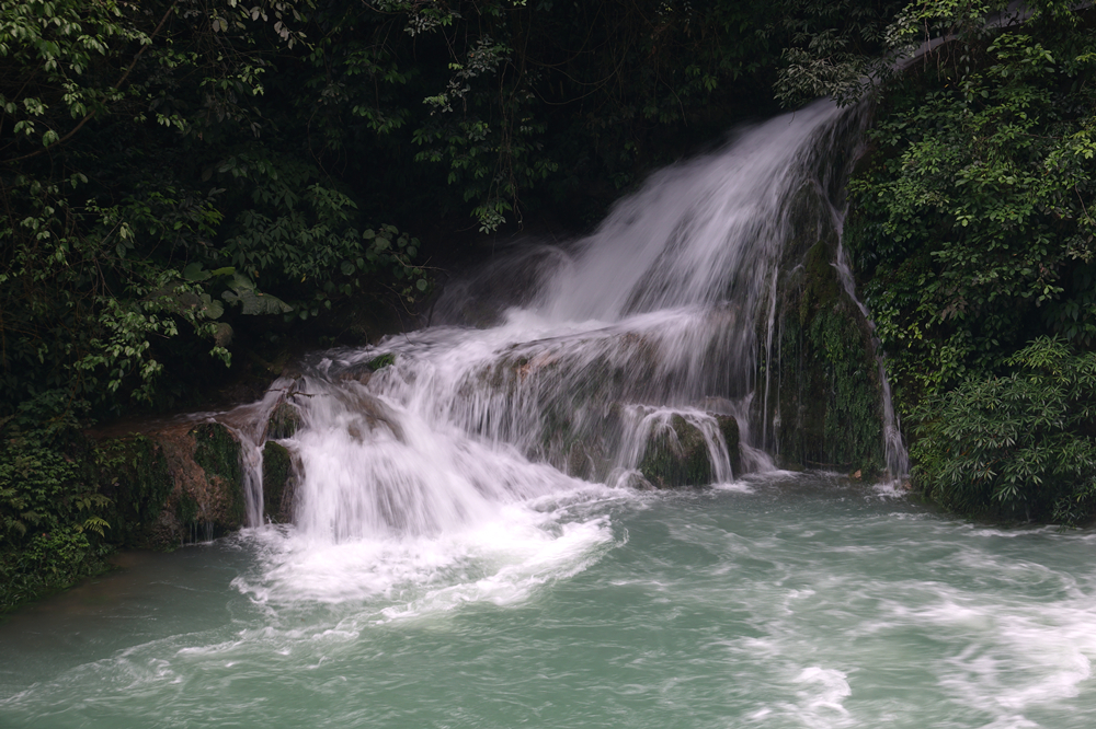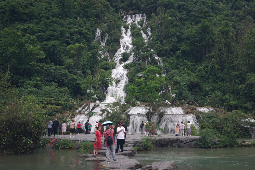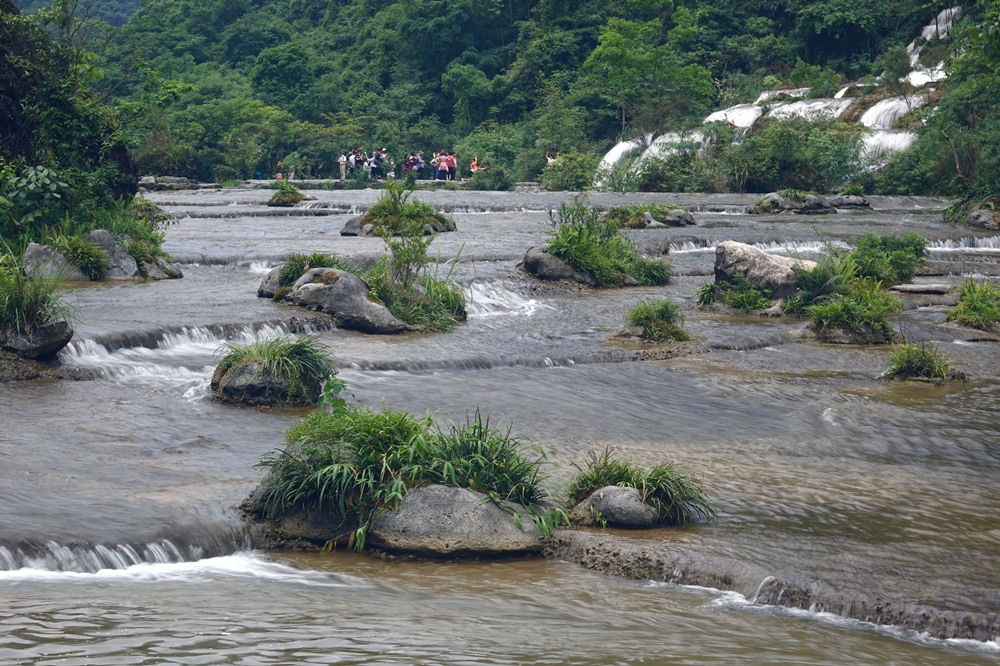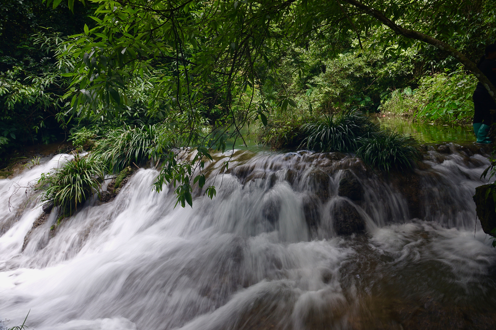 景區(qū)主要有拉雅瀑布、68級跌水瀑布、石上森林、野豬林、水上森林、天鐘洞、臥龍?zhí)?、鴛鴦湖等21個(gè)景點(diǎn),享有“超級盆景”之譽(yù)。李仁奇 攝