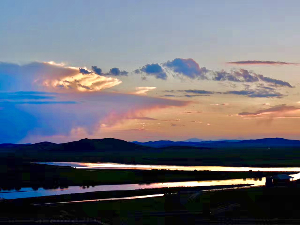 日落時分,空中的云不再是白色的,而是像披上了一件橘紅色的衣衫,漂浮在空中,平靜柔美的河水也鍍上了一層金黃色的光暈。“九曲黃河第一灣”,果然名不虛傳。李仁奇 攝