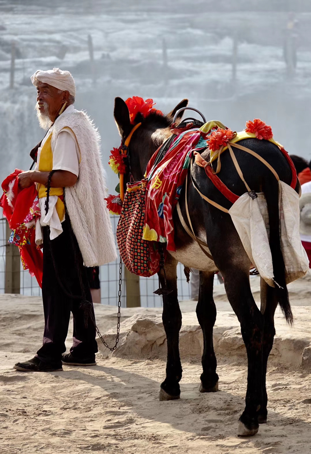 騎毛驢合影成為很多游客熱愛的項目。李仁奇 攝