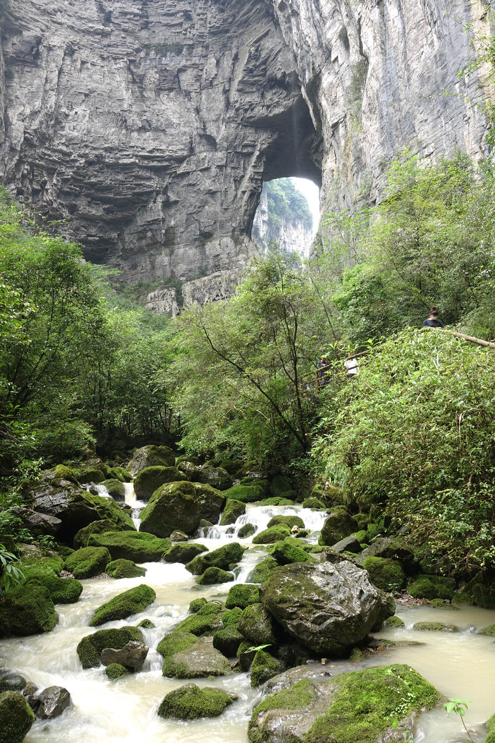 青龍橋?yàn)檠蛩訊{谷上的第二座天生橋,又名中龍橋,橋面高281米,是三座天生橋中最高者,為世界喀斯特天生橋高度之最。李仁奇 攝