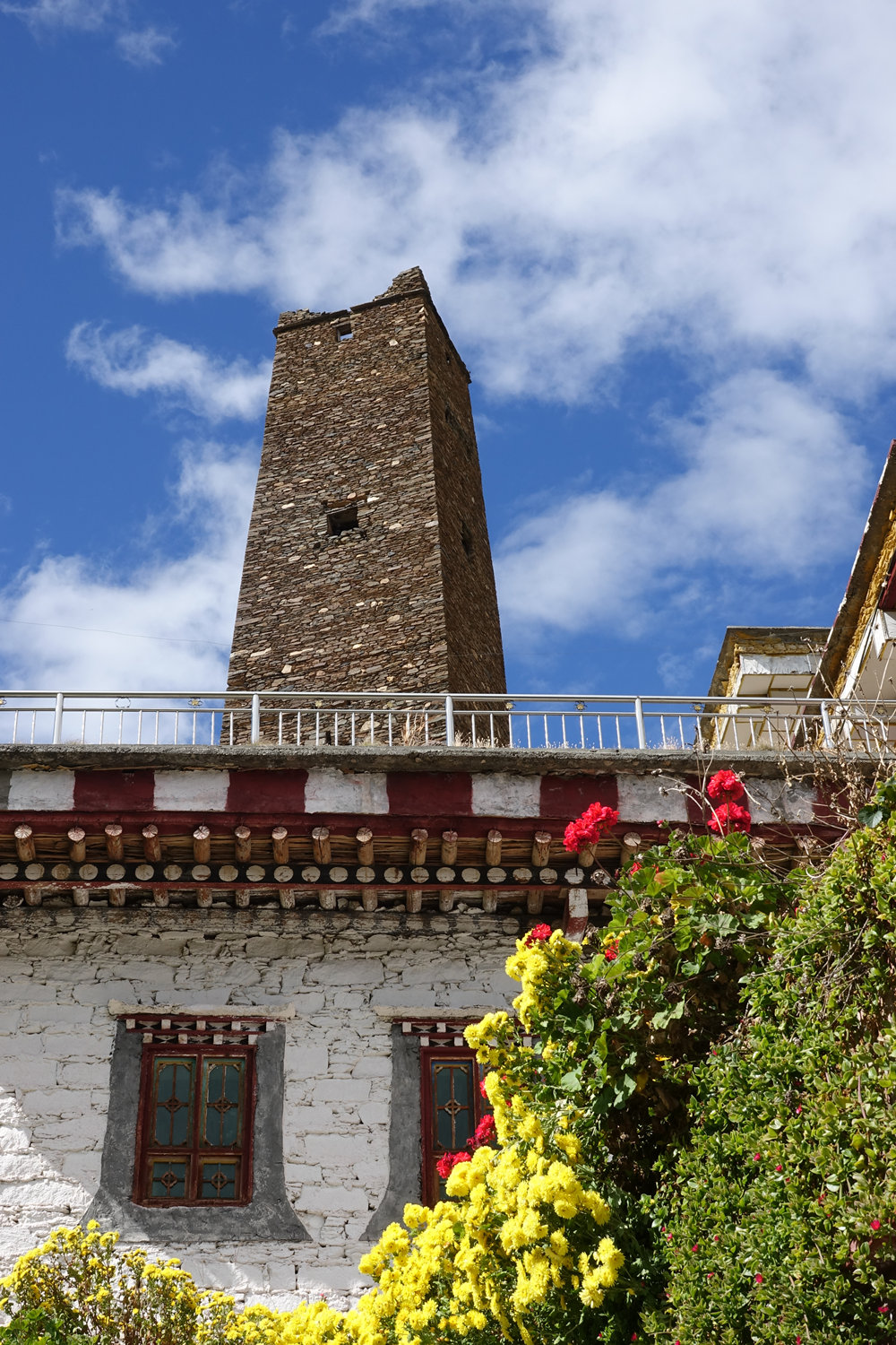在它的后面三個碉樓特別吸引眼球。左邊第一座是五角碉,第二座是八角碉,第三座是常見的四角碉。李仁奇 攝