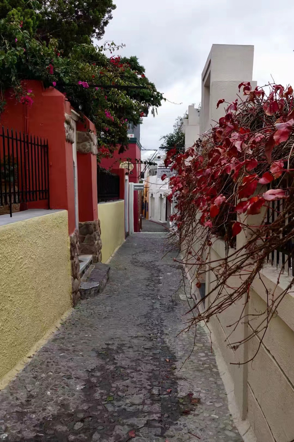 巷子兩旁商店一間接一間,不時(shí)抬頭,你或許會(huì)遇見(jiàn)一座藍(lán)色穹頂教堂,或者是一簇紅艷艷的簕杜鵑。李仁奇 攝