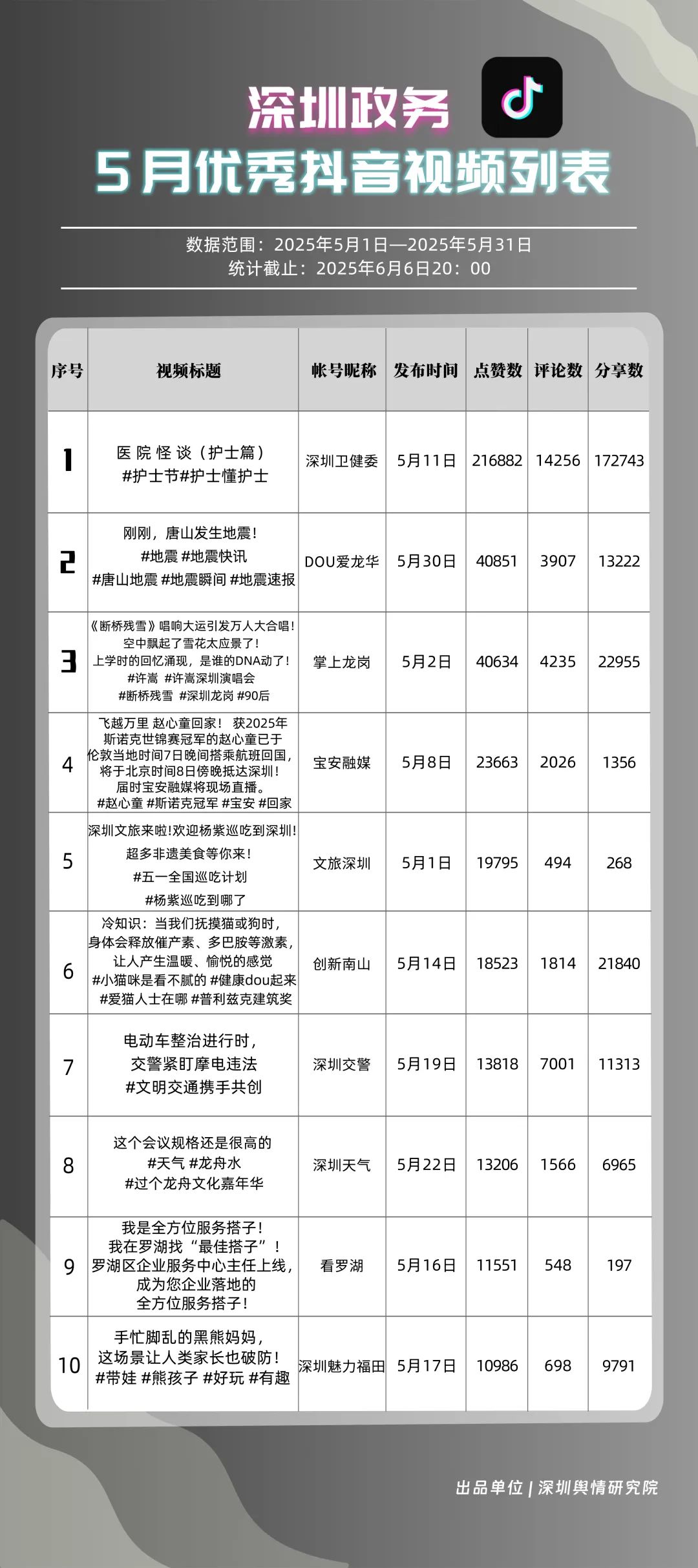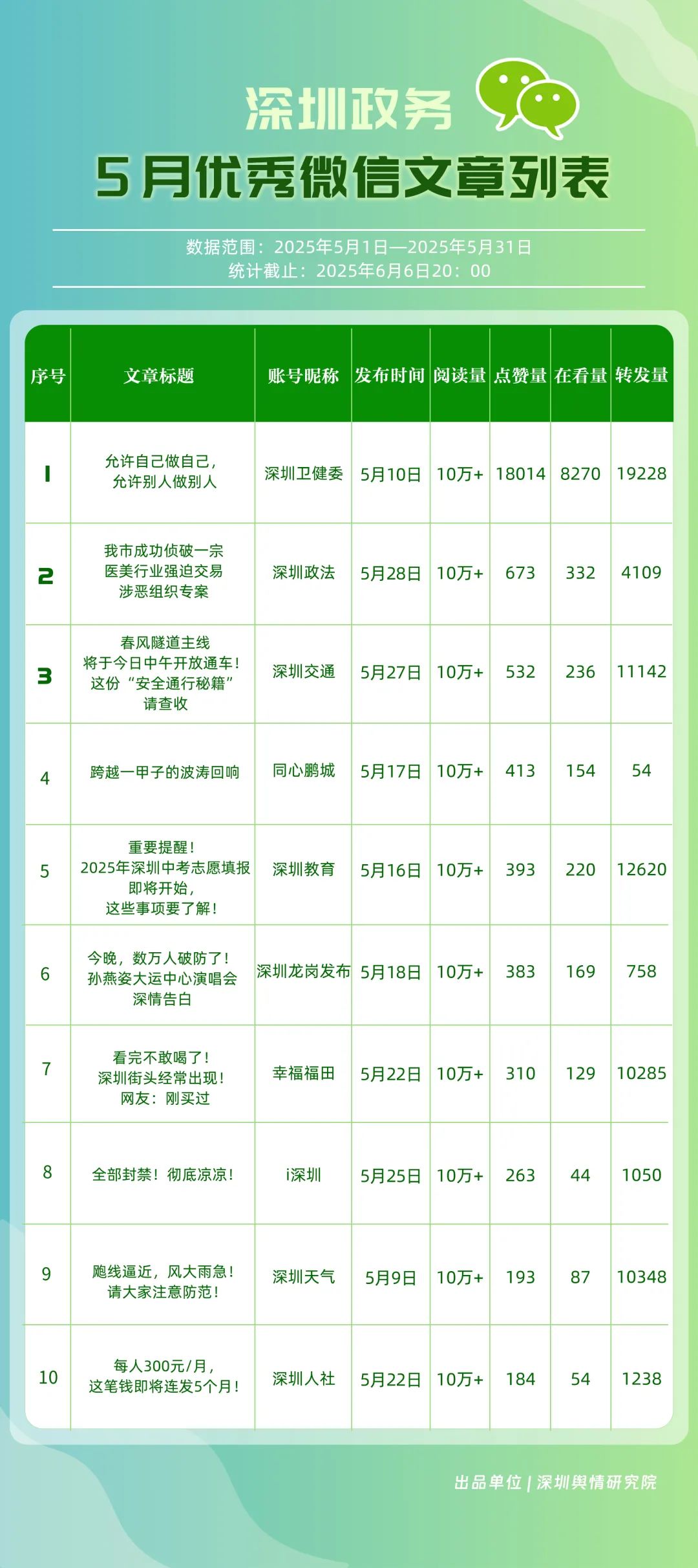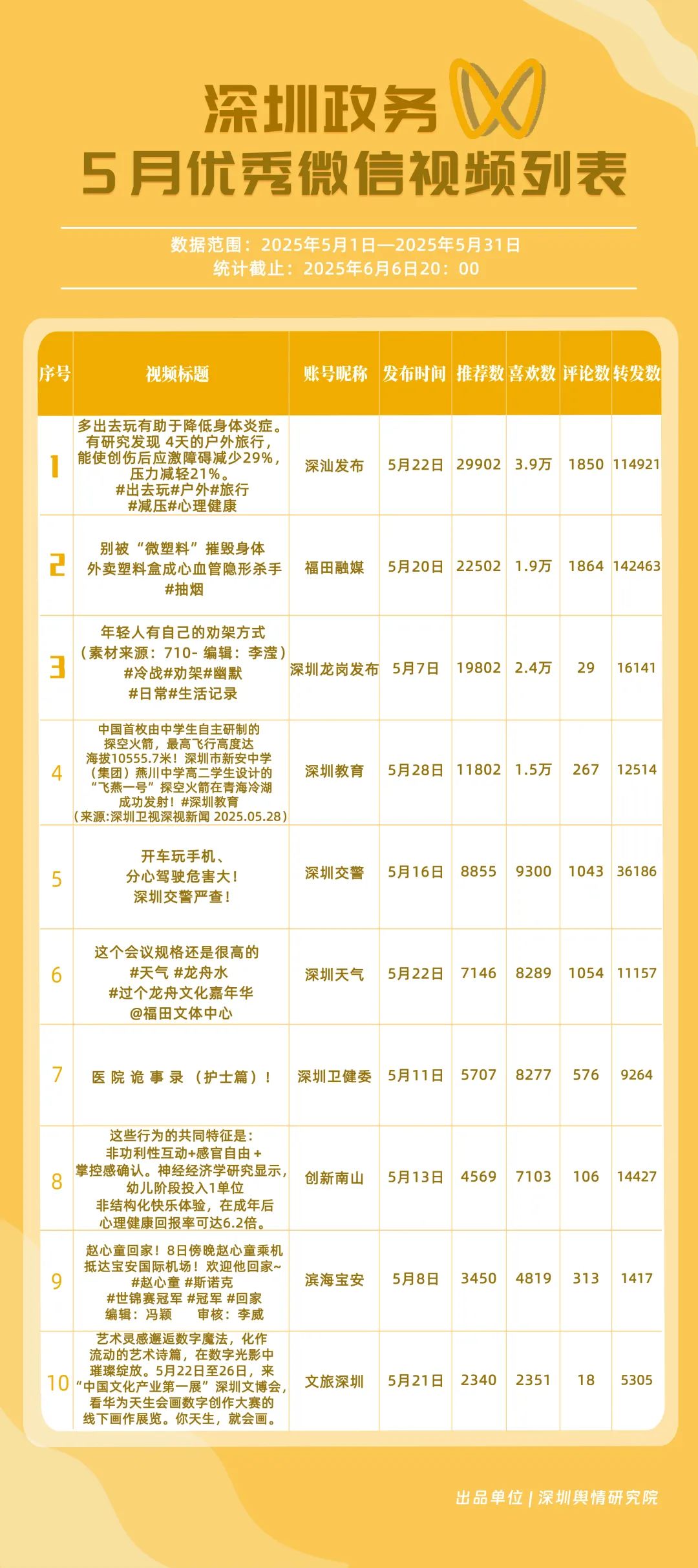 “深圳優(yōu)秀政務(wù)新媒體矩陣”榜單5月情況一覽!