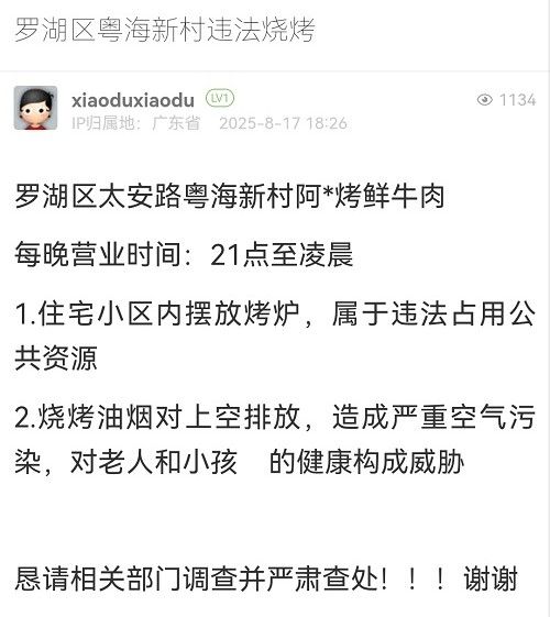 26. 帖文《羅湖區(qū)粵海新村違法燒烤》