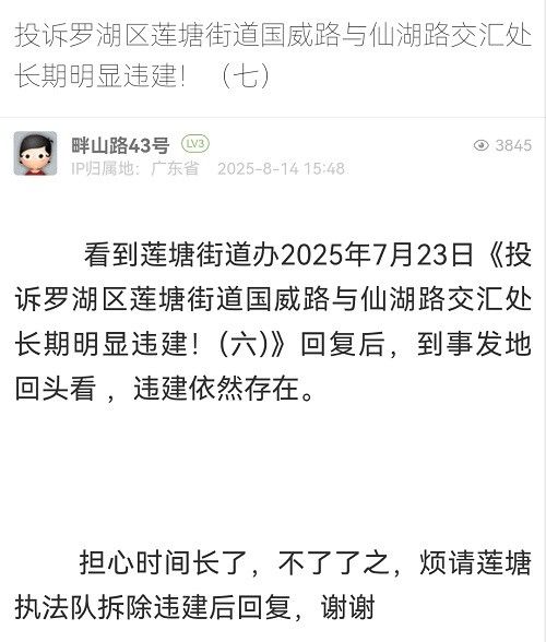 16. 帖文《投訴羅湖區(qū)蓮塘街道國威路與仙湖路交匯處長期明顯違建?。ㄆ撸?/a>》