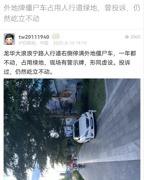 21. 帖文《外地牌僵尸車占用人行道綠地,曾投訴,仍然屹立不動》