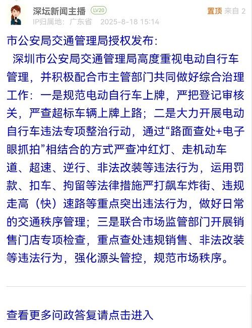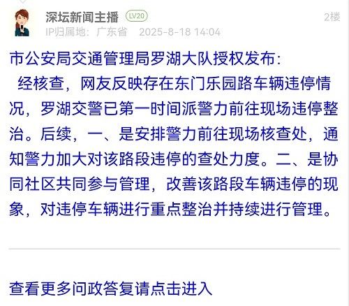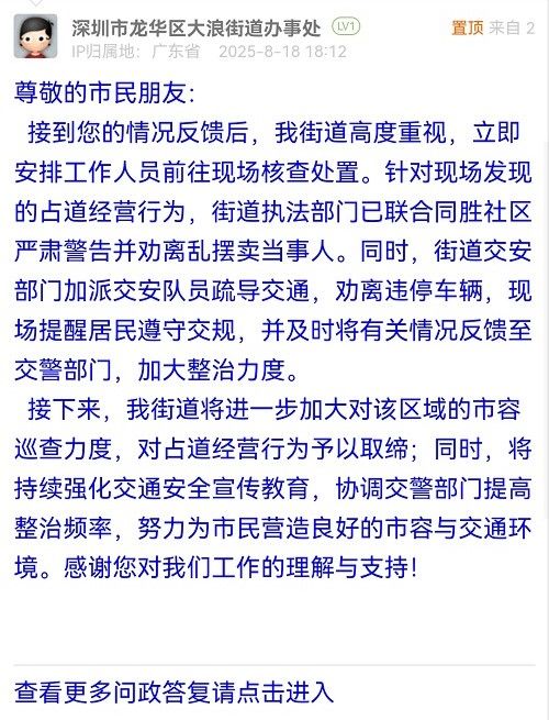 據(jù)統(tǒng)計,2025年8月11日-2025年8月17日,網(wǎng)友在深圳論壇發(fā)布問政類帖文共31篇,得到相關(guān)單位正式回應(yīng)的帖文數(shù)為31篇,本期簡報回應(yīng)速度最快的單位:市市場監(jiān)督管理局光明監(jiān)管局、福田交通局、龍華區(qū)民治街道辦事處、南山區(qū)南頭街道辦事處、市公安局交通管理局龍崗大隊(duì)、龍崗區(qū)衛(wèi)生健康局、南山區(qū)城市管理和綜合執(zhí)法局、福田區(qū)梅林街道辦事處、羅湖區(qū)蓮塘街道辦事處。