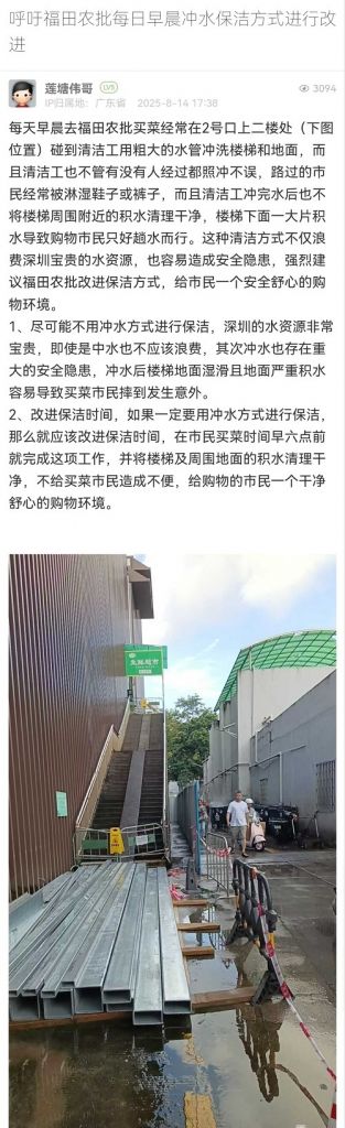 17. 帖文《呼吁福田農(nóng)批每日早晨沖水保潔方式進(jìn)行改進(jìn)》