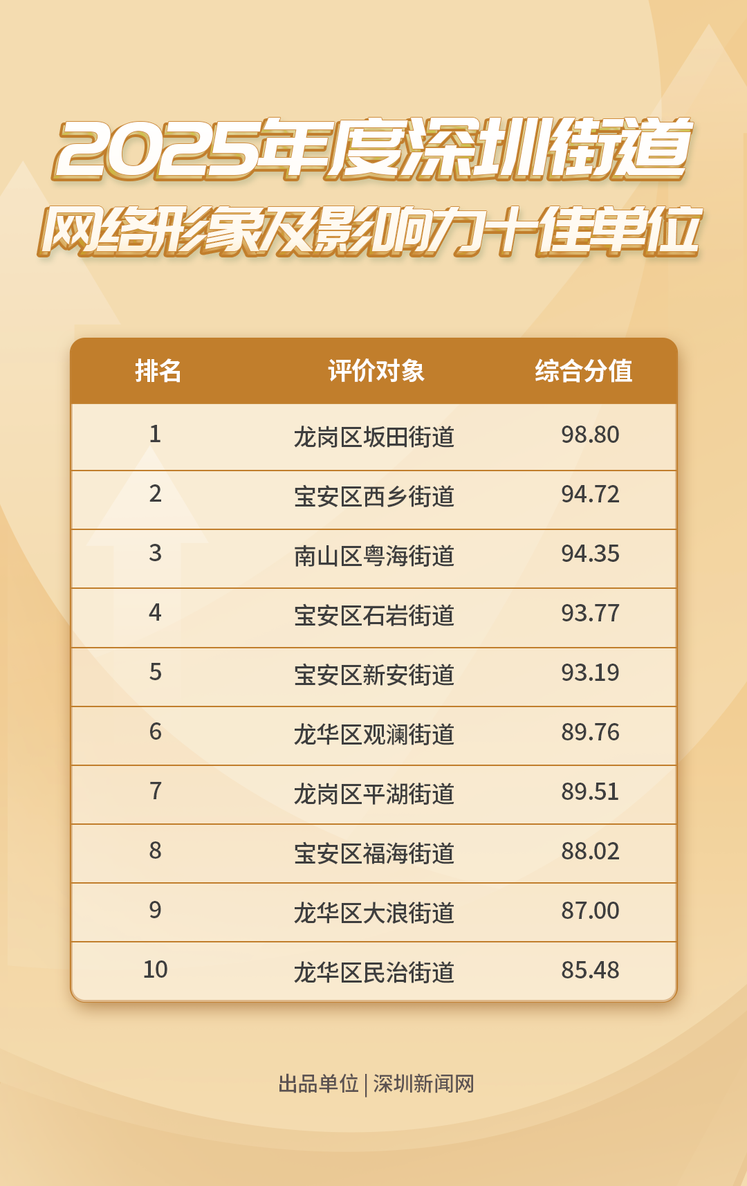 《深圳各街道網(wǎng)絡形象及影響力榜》